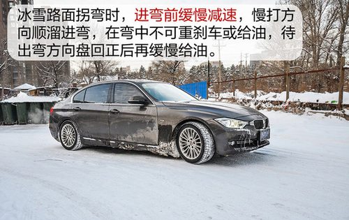 在冰雪路面拐弯时,需提前在进弯时候吧速度降到安全的范围,慢慢打方向过弯,在弯里不可突然给油或重踩刹车,很容易导致失控。正确做法是:弯前慢减速→松开刹车慢打方向→车辆溜着过弯→慢回正方向盘→最后再慢慢给油。