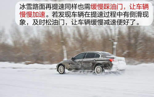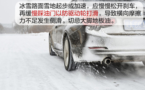 冰雪路面起步时应慢慢松开刹车或放离合,让车辆缓慢动起来后再轻踩油门。切忌一起步就大脚油,车轮必定打滑,从而容易发生侧滑现象,起步速度更加慢,燃油更多浪费在打滑时。